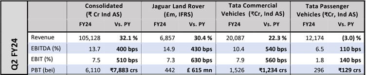 Let us look at crucial numbers of Tata Motors for Q2FY24: