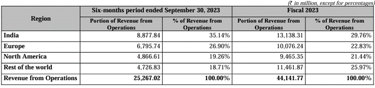 Their Education business provides “phygital” education solutions in manufacturing skills, including upskilling and reskilling about the latest engineering and manufacturing technologies to public sector institutions and private institutions and enterprises through curriculum development and competency center offerings through its proprietary iGetIT platform. In FY23 and the six months ended September 30, 2023, the Technology Solutions business contributed 20.00% and 21.38% of its revenue from operations for the respective periods.