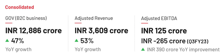 EBITDA: The company reported adjusted EBITDA of Rs 125 crore - it was positive for third consecutive quarter. In the year-ago period, Zomato reported a negative adjusted EBITDA. In the previous quarter, the adjusted EBITDA was Rs 41 crore. Annualised Adjusted EBITDA profit is now Rs 1,000+ crore. They expect both margin expansion and GOV growth to drive further improvement in absolute profits.