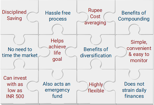 SYSTEMATIC INVESTMENT PLAN (SIP) Systematic Investment Plans, called SIPs, helps the investor create wealth over the long term through small and consistent investments. By making small, disciplined savings in mutual fund schemes over a period of time, these plans bring the investor closer to realizing his/her financial goals. Simply put, a SIP is an investment option or approach to invest a fixed amount in any fund or scheme at regular intervals. By investing across market phases, whether bullish or bearish, this approach ensures that the cost of investment averages out over a period of time.